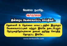 தென்காசி மற்றும் நெல்லை மாவட்டத்தில் இருக்கும் வேலைவாய்ப்புகள் அல்லது இங்கே நடைபெறும் நேர்முகத்தேர்வுக்கான தகவல் குறித்த செய்திகள் இங்கே..